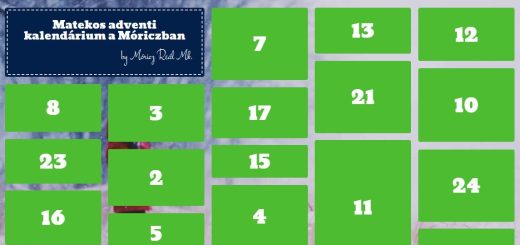 Kedves Móriczos Diákok! Készítettünk Nektek egy matekos adventi kalendáriumot. A kalendárium 20 db játékos matek feladatot, rejtvényt tartalmaz, valamint 4 meglepetést a pihenőnapokra.